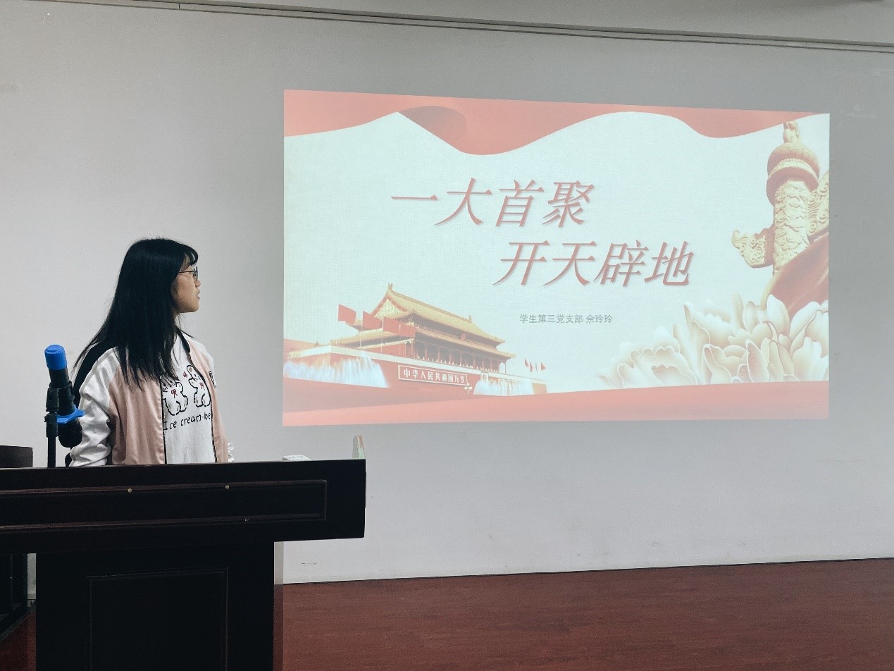 首先,按支部学习计划,由支部党员余玲玲同志为大家讲授了题为“一大聚首 开天辟地”的党史故事微党课。其从中共一大的会议背景、会议内容和历史意义三个层面展开介绍,回顾了从十月革命以来的革命历史,带领同志们学习了会议中通过的党纲和决议。一大召开标志着中国共产党的正式成立,犹如一轮红日在东方冉冉升起,照亮了中国革命的前程。这次微党课让与会同志重温了党的诞生的庄严时刻,更加坚定了同志们忠于党、忠于人民的信念。