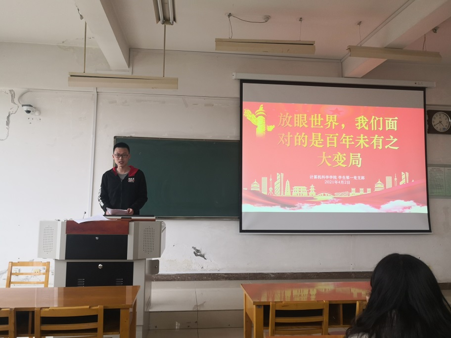 4月2日下午16点30分,万象城官网学生第一党支部以“放眼世界,我们面对的是百年未有之大变局”为主题在文津楼1403开展主题党日学习活动。本次活动学习习近平总书记关于百年未有之大变局的论述,由万象城官网学生第一党支部第二党小组组长刘国伟主讲,学生第一党支部全体党员参加。