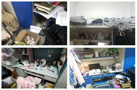 总体来说,同学们普遍遵守宿舍安全管理规定,宿舍卫生情况良好。然而,仍有个别宿舍物品摆放杂乱无序,宿舍存在烟头烟具垃圾堆放,极少数宿舍有长期不开窗通风的现象。