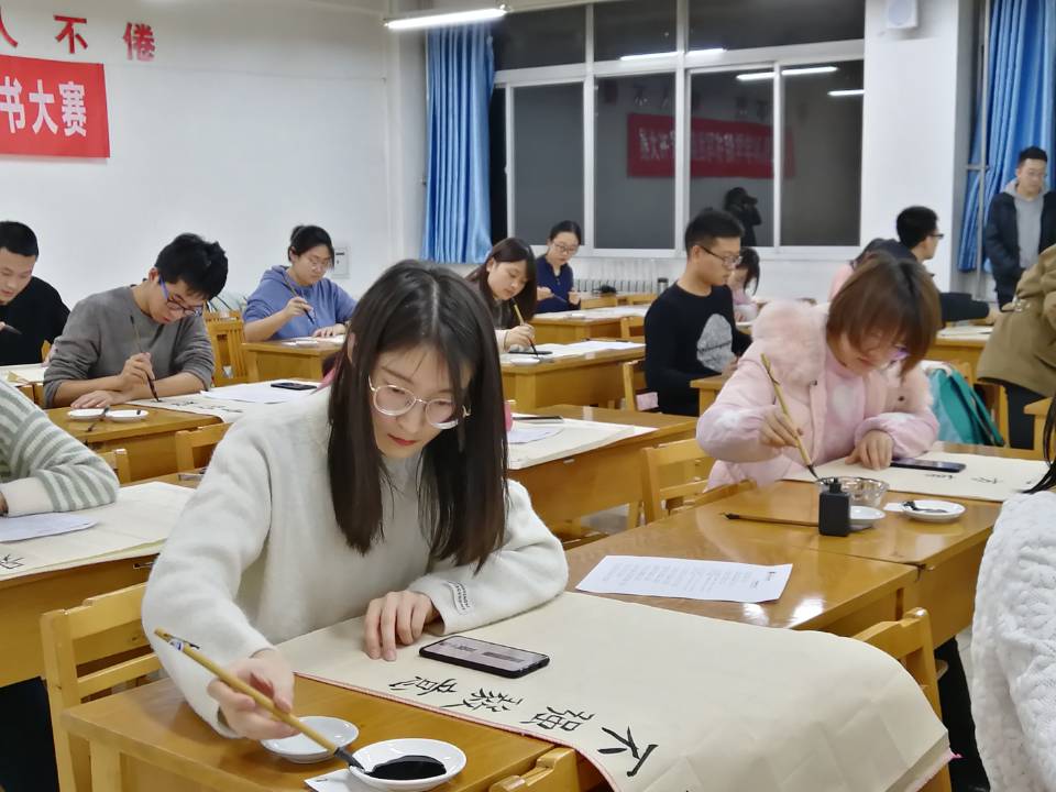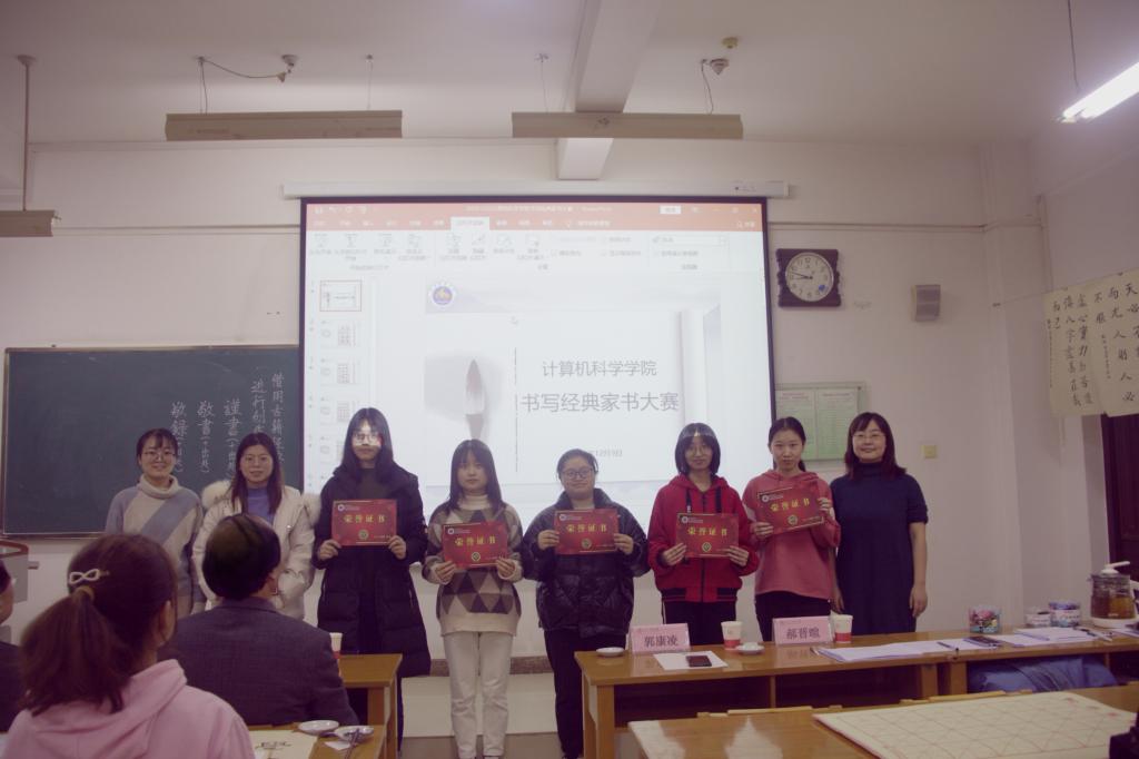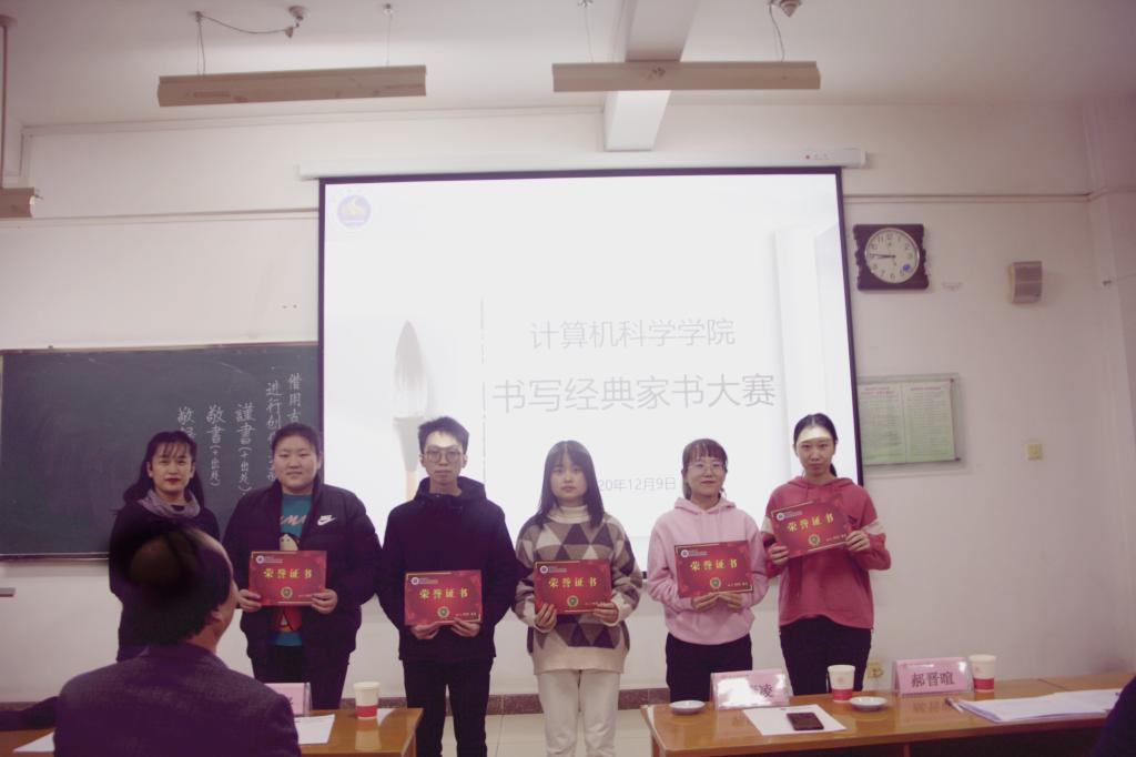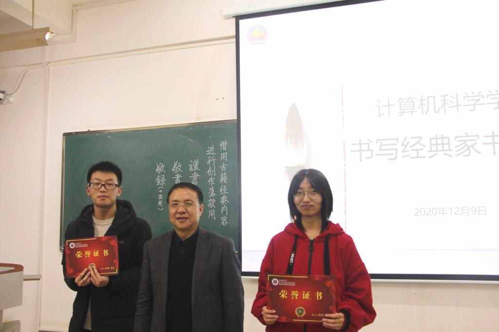 选手提交作品后,文化服务队志愿者与学生会同学对作品进行悬挂,与会嘉宾老师与同学共同欣赏评鉴。根据评委老师评分,王明慧、董策典获得大赛一等奖;刘玲嘉、卢迅、文天娇获得大赛二等奖;姬卓君、姜晓雯、刘庚鑫、李鑫、蒋山获得大赛三等奖。孙毅、姜晓雯、陈雅惠、刘庚鑫、王明慧、陈川、邱舒阳获得“翰墨书香”书法培训班优秀志愿者。王小明、黄怀平、袁冰、郭康凌、安琪分别为大赛获奖选手以及书法班优秀志愿者颁发荣誉证书。