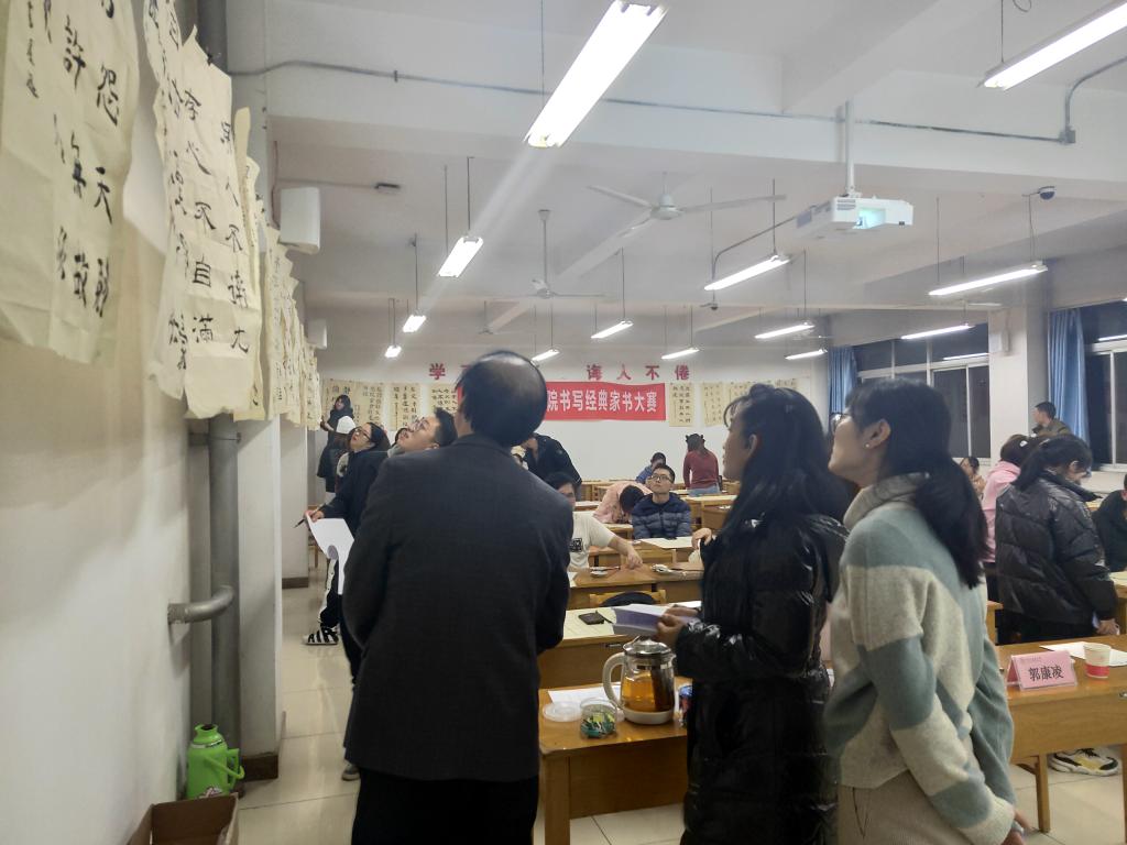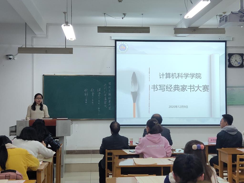 为大力弘扬社会主义核心价值观,发扬中华民族家庭美德,提高同学们规范书写汉字的意识,万象城官网于12月9日晚在长安校区文津楼1420教室举办书写经典家书大赛。学院院长王小明、党委书记黄怀平、党委副书记袁冰、团委书记郭康凌、辅导员安琪、“翰墨书香”书法培训班指导老师郝晋暄出席比赛。学院“翰墨书香”书法培训班学员及36名参赛选手参加了比赛。