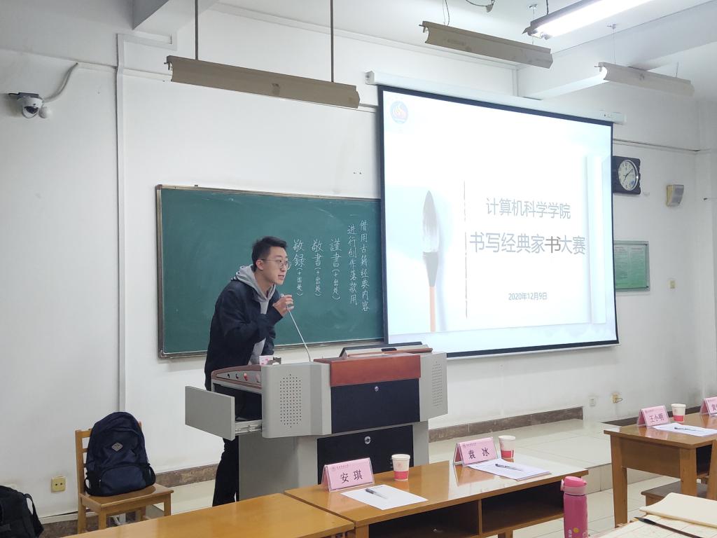 大赛由awc777万象城娱乐官网文化服务队队长孙毅同学主持。本次比赛共有36名选手参赛,书写了30条节选自《诫子书》《诫外甥书》《颜氏家训》《朱子家训》《曾国藩家书》等中国经典家书家训的内容。大赛进行前,郝晋暄向参赛选手介绍了折纸以及排版布局、落款的方法。随后,参赛选手根据抽签选取到的内容,伴随着轻柔悠扬的音乐认真书写,他们书写的不仅是一个个汉字,更是在修身养性、为人处世、交友识人、持家教子、治军从政等方面的殷殷教诲。“静以修身、俭以养德” “国之强,必须多得贤臣工;家之强,必须多出贤子弟”,智慧理性、简练谨严的文字蕴育着真知良言,具有极强的说服力和感召力。