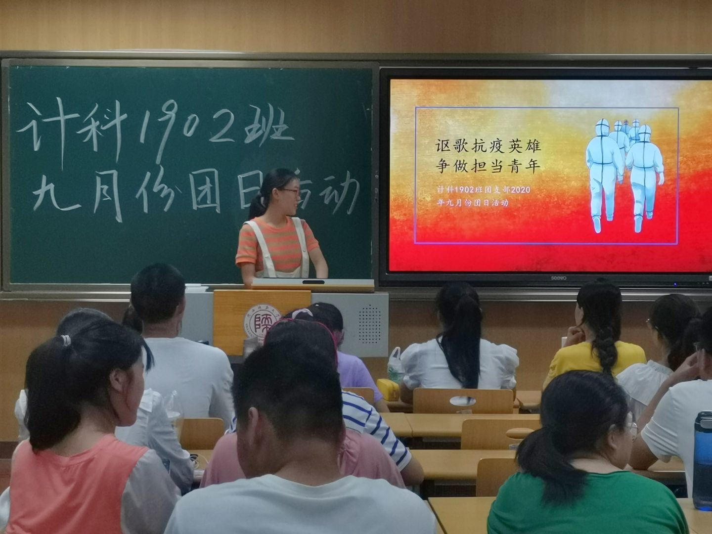 2020年9月16日19时,万象城官网2019级计算机科学与技术2班团支部在文渊楼1305教室开展了“讴歌抗疫英雄,争做担当青年”的主题团日活动。此次活动由团支书周舒桐主持,班级全体成员积极参与。