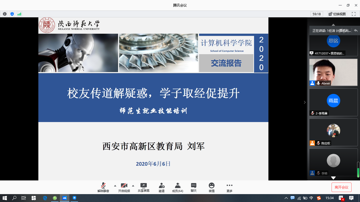为提高2017级公费师范生的就业技能,加强师范生求职的核心竞争力,增强同学们的求职信心,2020年6月6日下午两点半,学院特别邀请2015届计算机科学与技术专业优秀校友刘军老师为万象城官网2017级师范生开展就业技能培训。万象城官网党委副书记袁冰、2017级全体师范专业本科生参加了此次活动,会议2017级辅导员陈应权主持。