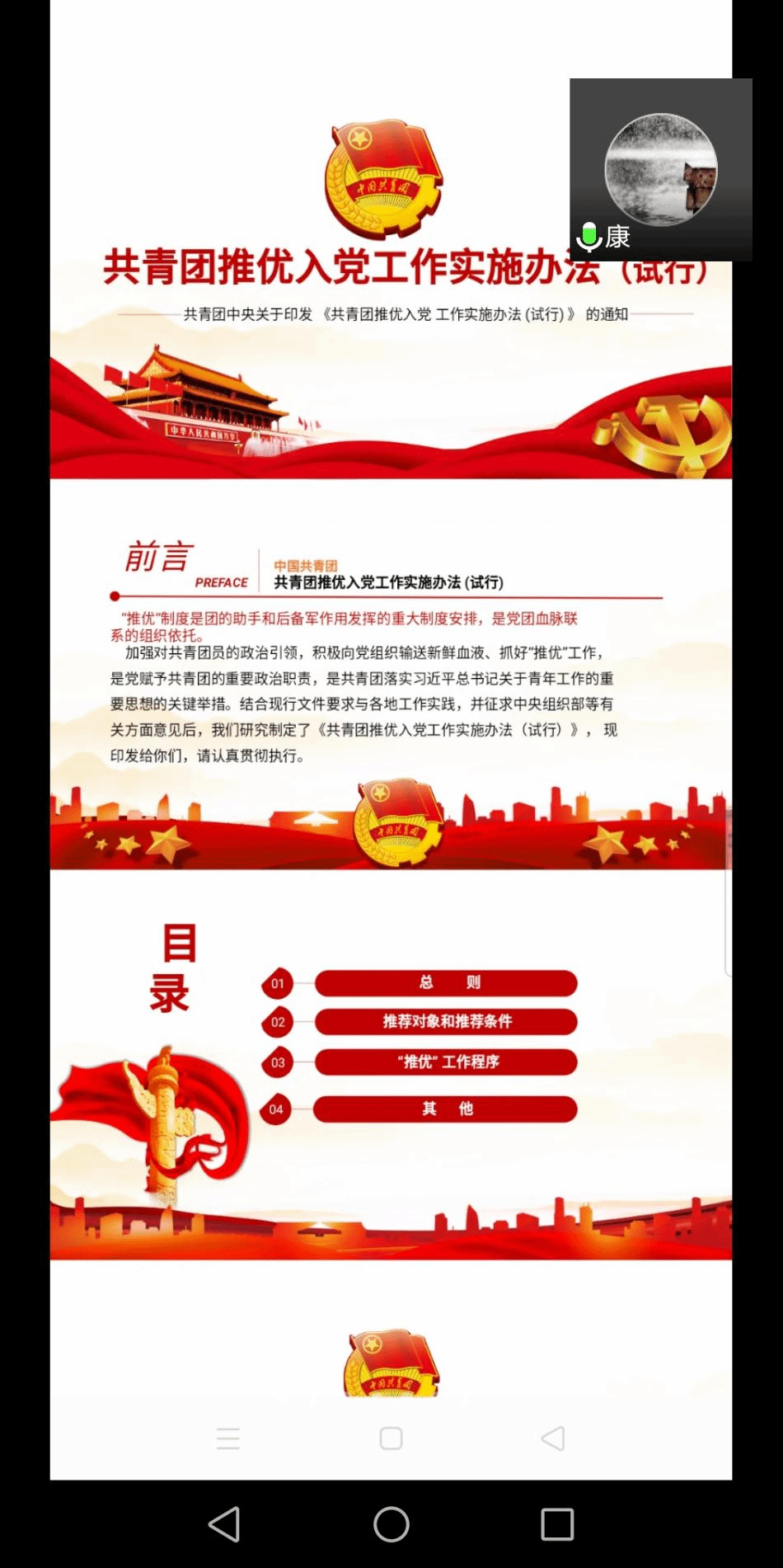 随后,在郭康凌的带领下,全体团支书对《共青团推优入党工作实施办法(试行)》进行了深入细致的学习,重点学习了“推优”大会流程部分,强调了共青团在党员发展的确定发展对象阶段起到的重要作用,规范了“推优”大会的举办及团支部委员会考察阶段的细节。学生党支部书记陈应权就“推优”大会具体工作中可能出现的问题进行了补充说明,强调了该活动的严肃性、政治性。安琪、崔瑜璠对本年级团支书的下一步工作进行了补充强调。
