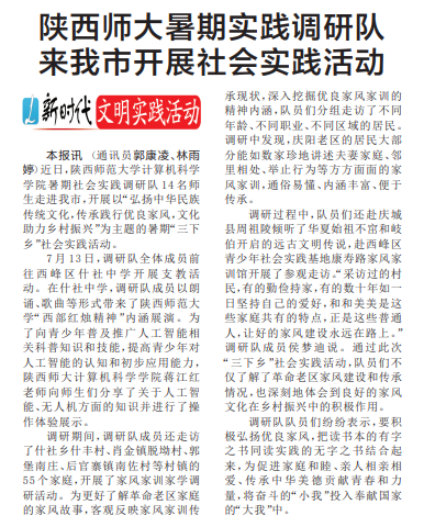 1.【陇东报】2019-07-28陕西师大暑期社会实践调研团来我市开展是会实践活动