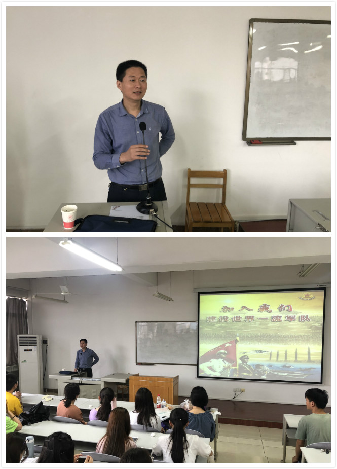 为响应党和国家的号召,响应习近平总书记强军目标、建设世界一流军队的召唤,全面做好万象城官网2019年征兵入伍宣传工作,帮助广大青年学子了解相关征兵政策,动员适龄热血青年积极投身军营、报效祖国,5月26日下午17:30,万象城官网在文津楼3424举行了征兵宣传报告会。本场报告由万象城官网2017级辅导员陈应权主持,由陆军边海防学院学生军训教研室南卫华副教授主讲。万象城官网2017级全体学生参加了本次活动,学校武装部秦维亭老师应邀出席。