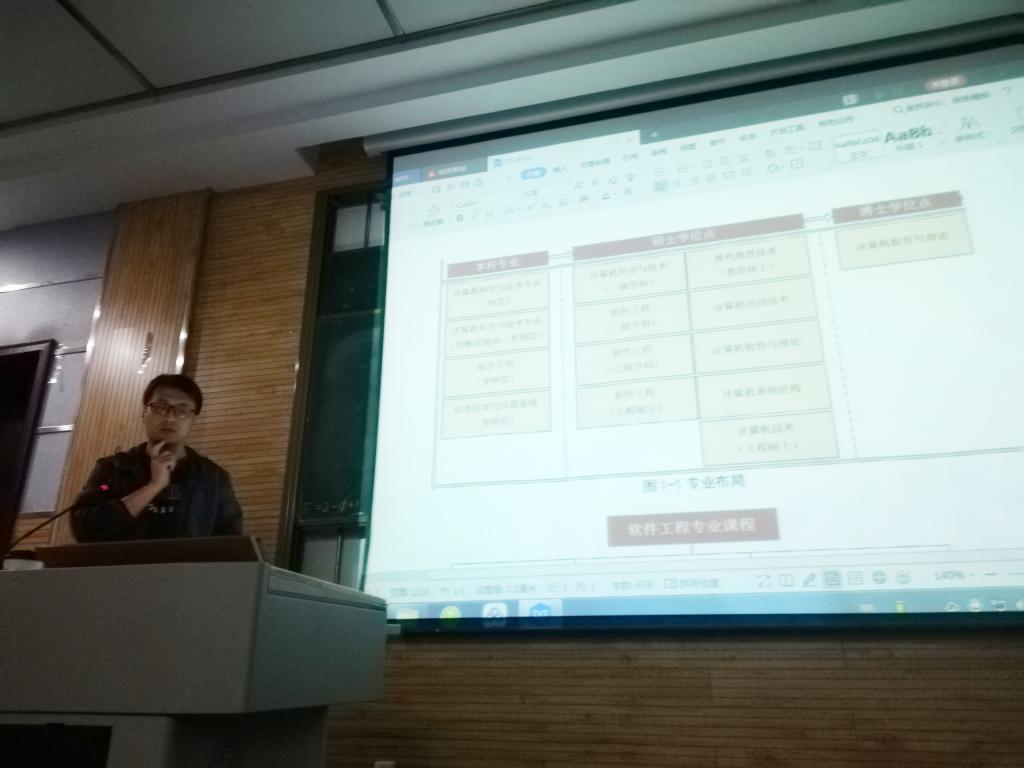 祁老师用表格清晰列出了本专业的专业布局、专业课程和师资力量等内容,使同学们清楚地了解到软件工程专业的就业方向与就业优势。