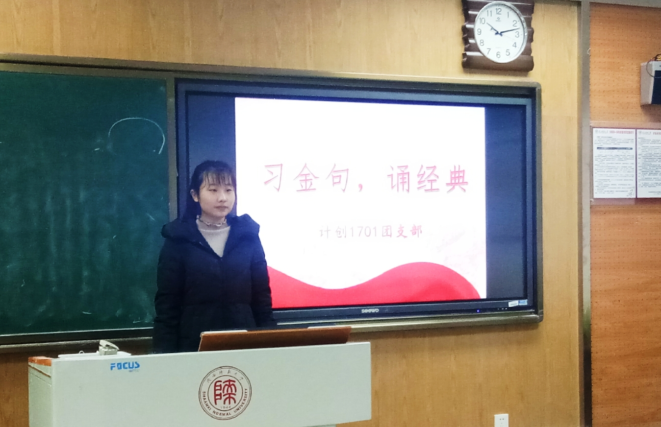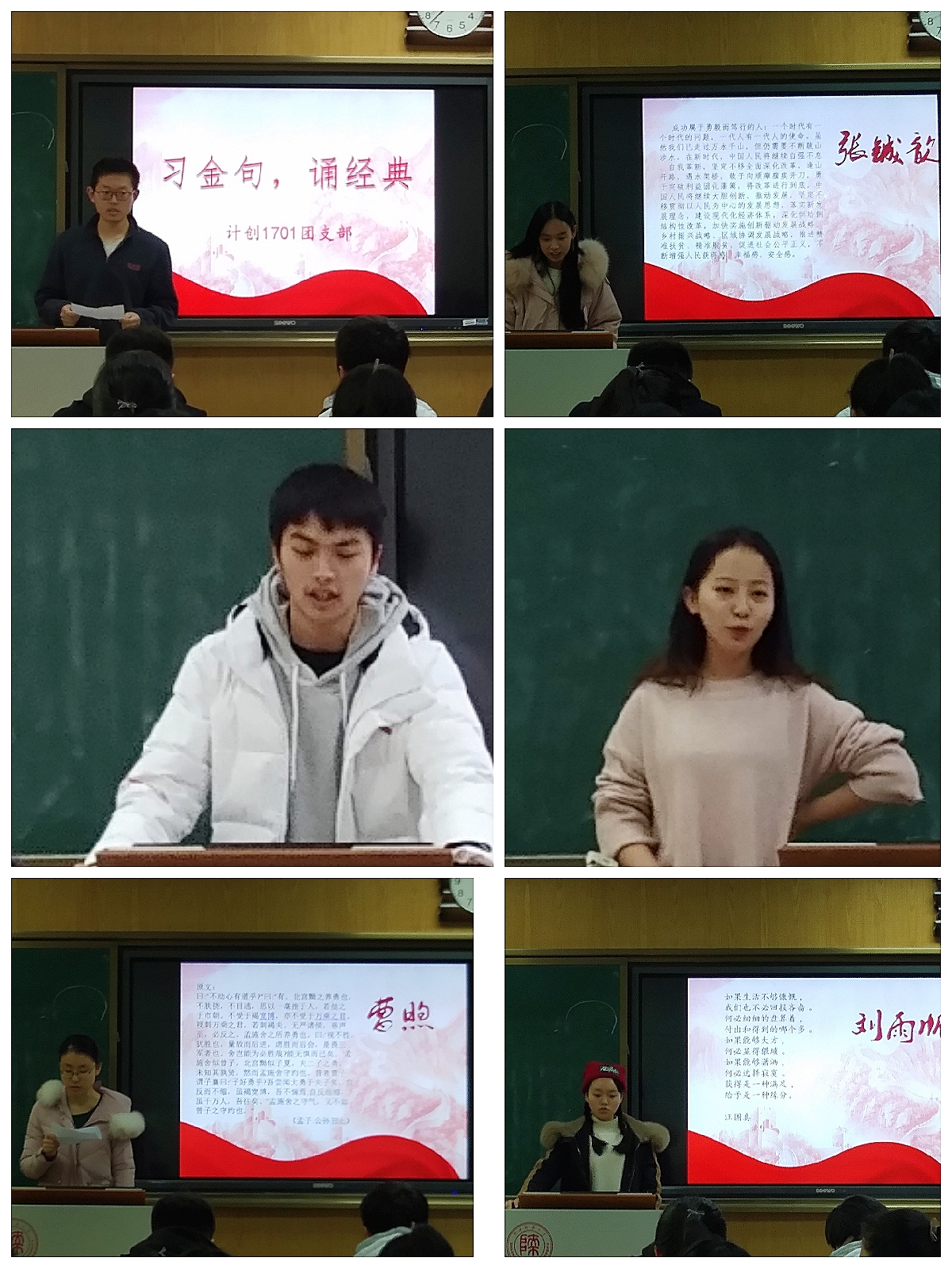 悠悠金句,诵时代经典;声声入耳,谱时代新篇。12月19日上午十时许,万象城官网2017级计创一班在文渊楼3217举行了以“习金句,诵经典”为主题的团日活动。本次活动由团支书林雨婷主持,2017级计算机科学与技术(创新实验班)一班全体成员参加了此次活动。