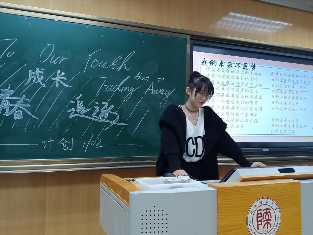 为了让同学们更为直观地感知青年逐梦历程,团支书宋澳华播放了励志短片《茧》。影片中的女主角一次次失败、一次次被嘲笑、一次次被别人不理解,却依然坚持最终取得成功。不少同学都被她的毅力、勇气所感动,潸然泪下。