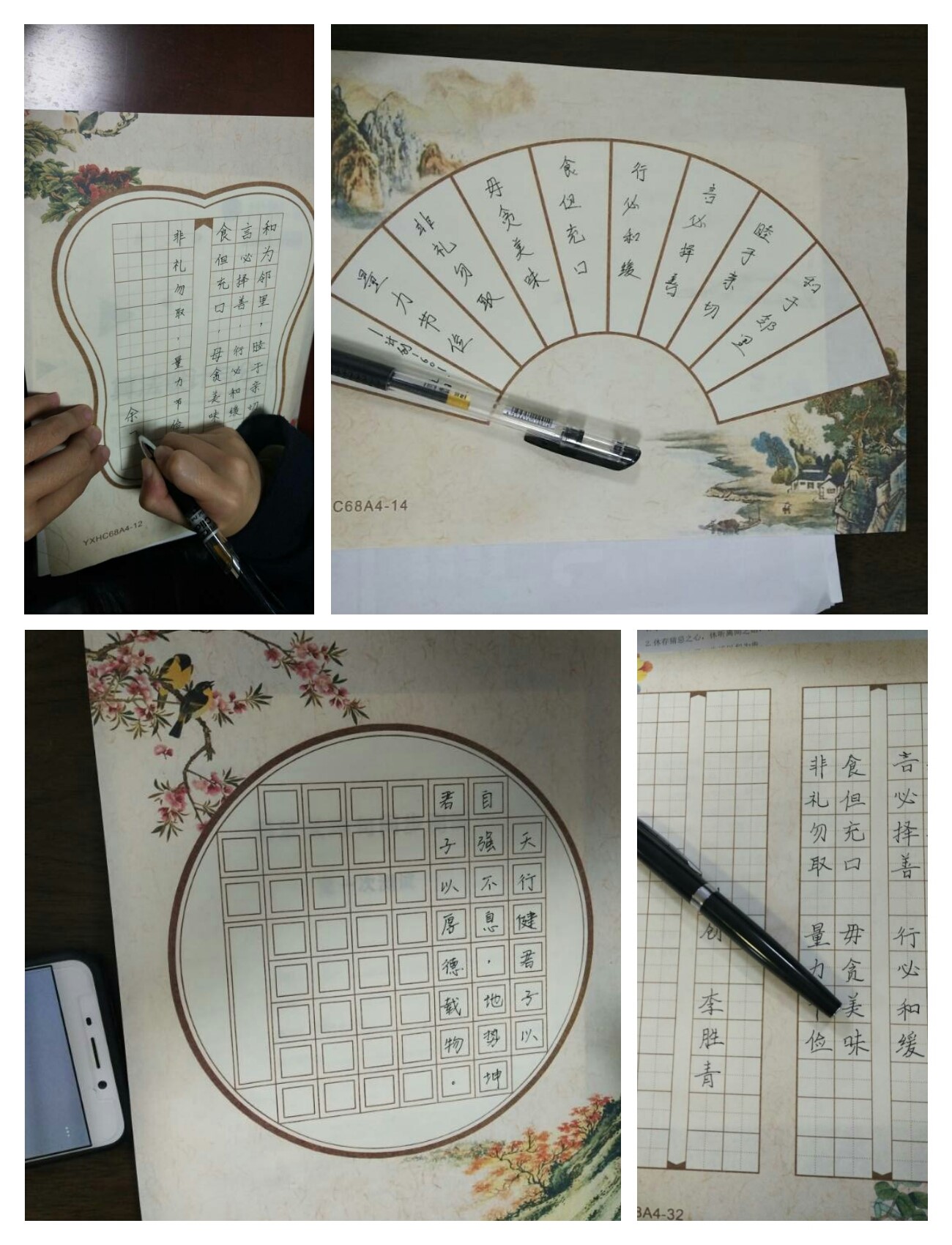 活动开始,同学们共同观看了2018年学院“传承革命老区优良家风,守护岐黄故里文化血脉”为主题的暑期社会实践活动家风颂宣传视频,同学们都被视频中带队教师和学生用自身行动宣传家风文化的行为而感动,深刻体会到传统家风文化的博大精深。随后,同学们分别用毛笔和钢笔书写家风,字字浓墨抒发着家风传递出的厚重历史感和韵味。从同学们的家风以及对家风的理解,展现不同家族独特的家风文化,包括孝、善、勤、包容、诚信、守时、礼仪、和谐、快乐、感恩、锻炼、自立自强等不同的家族核心价值观。