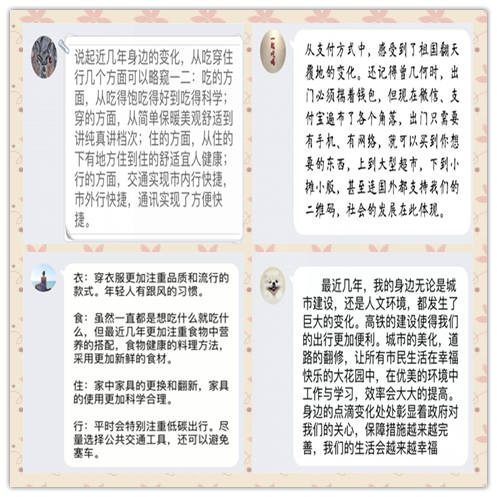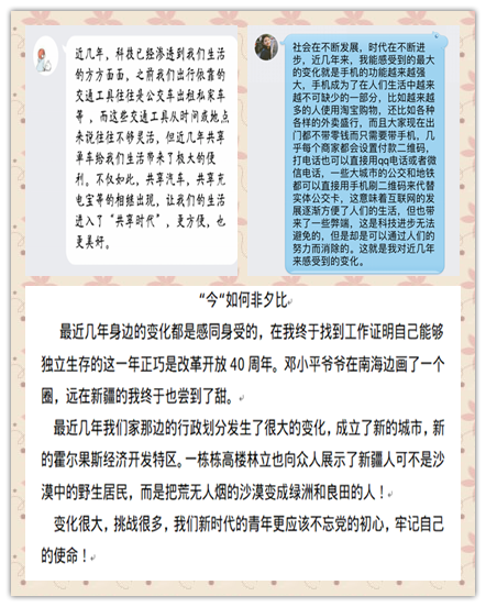 2018 年是改革开放40周年,是决胜全面建成小康社会、实施 “十三五”规划承上启下的关键一年,2018年10月28日,在全国各地中小学实习的计科1501团支部成功开展了主题为“谈谈你身边的变化”的线上团日活动,同学们通过结合自身经历,畅谈身边变化。