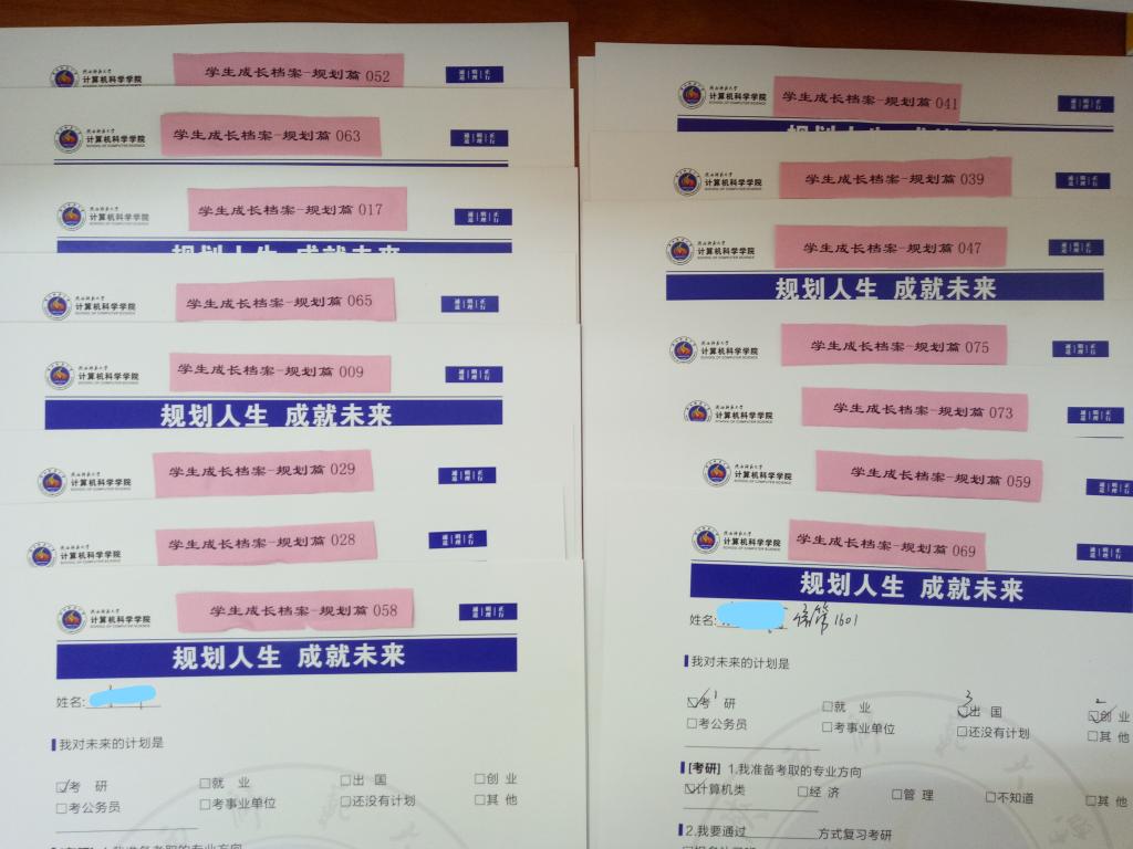 活动伊始,陈子桐展示了哈佛大学关于目标与人生25年的跟踪调查,结果表明越有目标的人越能取得更优秀的人生现状,强调了规划对人生的重要性和必要性。会上全体成员观看了学院“勇立鸿鹄志,誓做奋斗者”优秀学子宣传视频,视频中展现了万象城官网青年学子顽强拼搏、自强不息的精神风貌,为大家树立了朝着目标努力拼搏的优秀榜样。在思想交流与分享环节,任欣和钟雨森同学表达了对优秀学子的肯定与欣赏,同时意识到人生需要详细的规划,身为计科学子需要拼搏进取、追求美好。活动期间,在场的同学认真填写了awc777万象城娱乐官网学生成长档案(规划篇),为学院更好了解并有针对性地进行规划指导提供了数据依据。郭康凌向大家介绍了近五年来学院非师范生、研究生的就业情况,从企事业单位选拔人才的标准、不同岗位的素质要求等方面分析了两个专业考研的必要性,强调了每位同学必须要明确个人的人生规划,树立适合自己的目标,将精力放在学业与个人发展上,为升学就业选择积蓄力量。