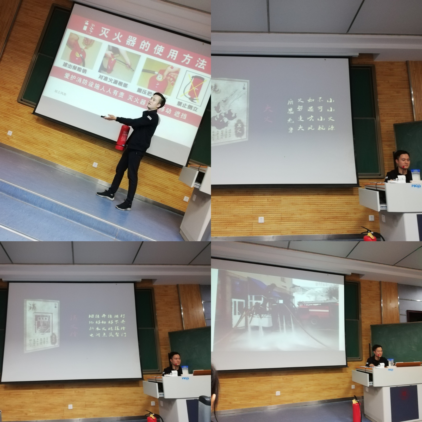 接着,秦天老师以幸存者偏差结合历史和现实案例引出本次讲座主题,从火灾危险性、火灾基本知识、初起火灾扑灭、火场逃生四个大的方面出发,用生动的语言让每个同学都沉浸在他的讲述中,同学们认真聆听,仔细记录。