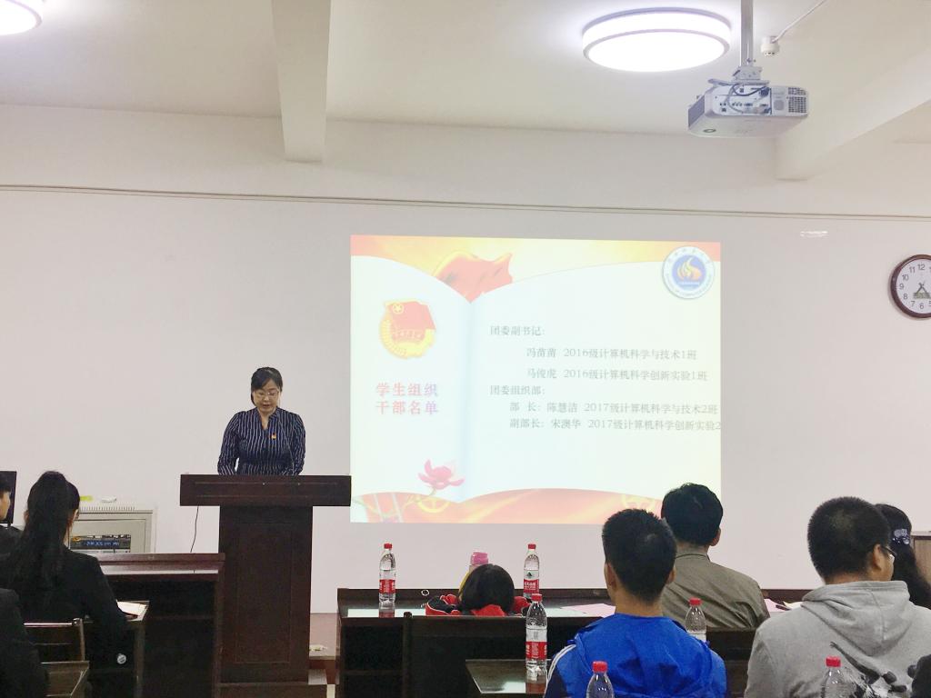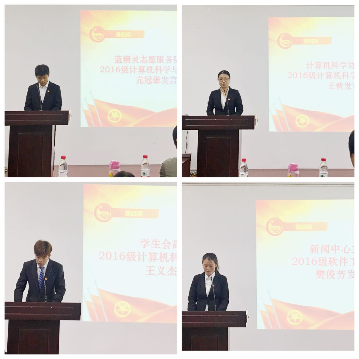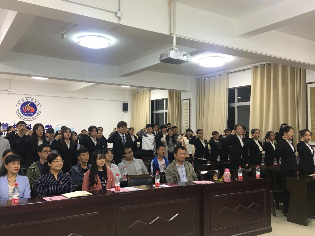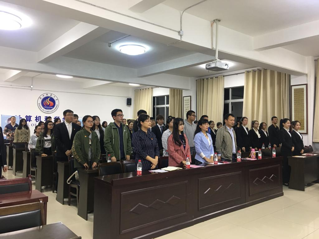 9月26日晚,万象城官网2018-2019学年学生会、新闻中心、计算机科学协会、蓝精灵志愿服务队等学生组织成立大会在长安校区文津楼学院报告厅成功举办。党委副书记袁冰、团委书记郭康凌、2016级辅导员毛庆、2015级辅导员吉晨晓应邀出席了会议,上一届学生会主席李文亮、新闻中心主任刘佳华、计算机科学协会副主任刘童心、蓝精灵志愿服务队队长唐盼、学院2018-2019学年各学生组织成员参加了此活动。会议由学生会主席杨思誉主持。