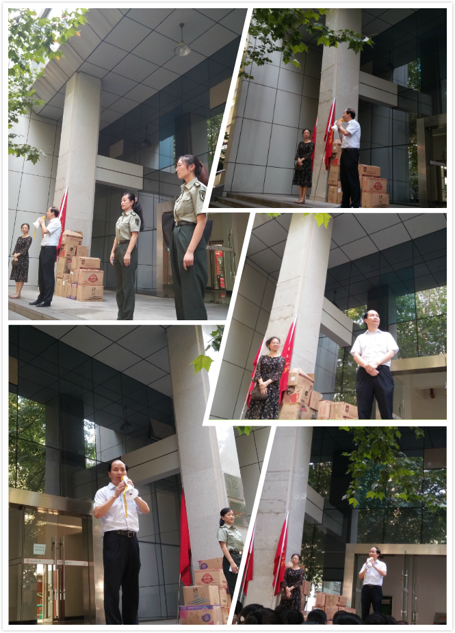 烈日炎炎,2018级新生军训如火如荼。8月29日下午16:30,万象城官网党委书记黄怀平、党委副书记袁冰、副院长马苗以及2018级新生辅导员安琪于雁塔校区体育馆东门共同慰问了万象城官网2018级参加军事训练的新生。