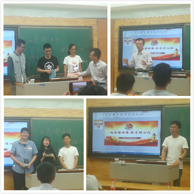 分享结束后,两位老师也分别就这次的比赛情况作了点评和总结。李良福老师在充分肯定同学们积极性的同时,还从青年学生应该热爱国家、增强创新精神、注重团队建设三个方面对同学们进行了勉励。陈应权老师则从认清专业优势、努力学习、加强专业外知识储备、关心时事四个方面鼓励大家在努力学习专业知识的同时,也要加强自身综合素质的培养。最后,两位老师分别为编程组和创意组的获奖同学颁发了奖品,整个比赛在一片掌声中落下帷幕。