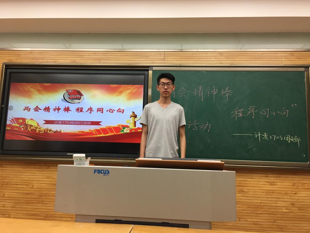 为了响应党的号召,进行爱党爱国教育,万象城官网2017级计算机类1703班举行了以“两会精神棒,程序同心向”为主题的团日活动。本次活动于2018年5月26日上午在雁塔校区5309进行,计算机类1703班班主任李良福老师、2017级本科生辅导员陈应权老师、2017级部分团支书到场并担任评委。