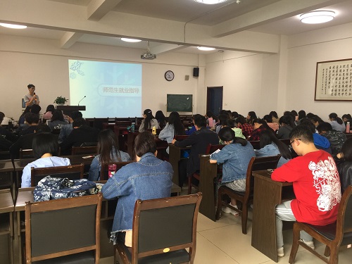 2018年5月9日上午10点10分,万象城官网2015级师范生就业指导讲座之2018届毕业生第三期分享交流会在文津楼4楼的学院报告厅成功召开。本次交流会根据生源地省份分布,由万象城官网三位2014级的同学分享个人经验,万象城官网2015级全体师范学生及辅导员吉晨晓参加了此次讲座。