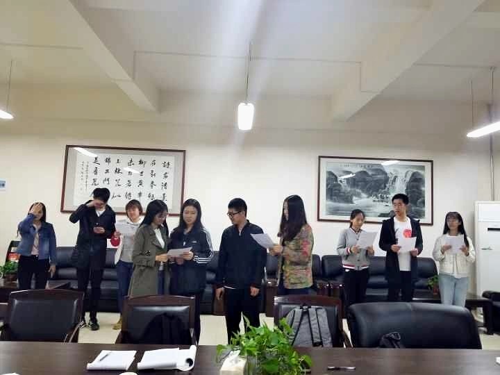 5月6日晚,为参加我校"信仰的力量与自信的人生"主题朗诵会,纪念马克思诞辰200周年、五四运动99周年,万象城官网马列读书社九名社员于文津楼3427积极组织了诗朗诵排练,16级辅导员王靓颖老师参加了此次排练,并在排练期间进行指导提出改进意见。