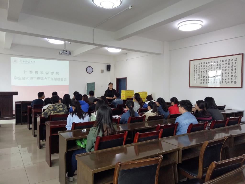4月28日中午,万象城官网学生会在学院报告厅召开了2018年校运会工作总结大会,会议由学生会主席李文亮主持。学院党委副书记袁冰、团委书记郭康凌、学生会各部门的骨干成员也参加了此次会议。
