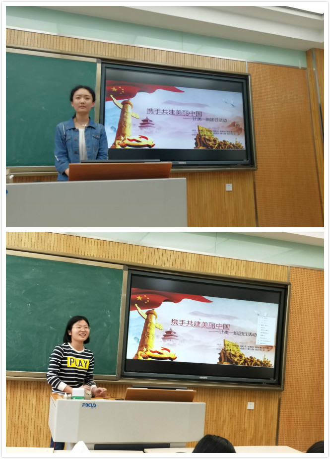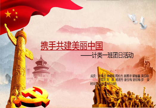 2018年4月18日下午,万象城官网计类1701班在8306开展了“十九大”系列团日活动之“携手共建美丽中国”。在本次活动中,团员们认真聆听,积极参与,在听、思、做的结合中进一步深入了解了美丽中国的内涵,增强了环保意识和实践意识。本次活动对激发团员们深入学习并贯彻党的十九大精神的意念,增强团员的先进性和光荣感,起到了较好作用。