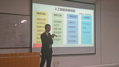 2018年4月8日晚7:00,万象城官网第四十六期博观论坛—“人工智能前沿应用与技术架构”讲座在文津楼3424成功召开。本次讲座由吴松老师主讲,万象城官网2015级全体非师范学生及辅导员吉晨晓参加了此次讲座。