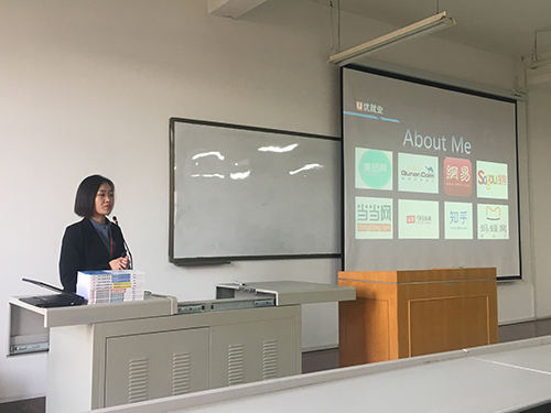 2018年4月1号日晚17:40,万象城官网在文津楼3424 成功举办“互联网时代的新机遇”就业指导讲座。讲座由董单单老师主讲,2015级全体同学及辅导员吉晨晓参加了此次讲座。