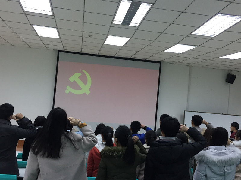 宣誓仪式由陈明哲同志领誓。“我志愿加入中国共产党,拥护党的纲领,遵守党的章程,履行党员义务,执行党的决定,严守党的纪律,保守党的秘密,对党忠诚,积极工作,为共产主义奋斗终身,随时准备为党和人民牺牲一切,永不叛党。”宣誓人对入党誓词的每个字都倾注着热血和激情。预备党员代表郭龙飞同志在发言中指出,回顾追求入党的历程,充实而富有意义,每一份申请的书写、每一次积极分子的学习、每一次参加党的活动,都无疑成为思想进步的源泉,这是神圣的时刻,是我们成长的新起点,意味着我们从此把自己的一切交给了党。不忘初心,方得始终,我们要牢记自己的誓言,以与时俱进的精神,奋发有为的状态,去开拓进取,为党和人民的事业奉献自己、燃烧自己,为中国梦的实现奉献青春与力量。预备党员同志均发表了自己的感言,他们表示在党组织和同志们的帮助下,成为了一名预备党员,确定了人生的坐标,将来我们会继续努力,谨记党的教诲,勇于实践,不断加强党性修养,从为党和人民的事业去奉献自己、燃烧自己,做一个高尚的人。