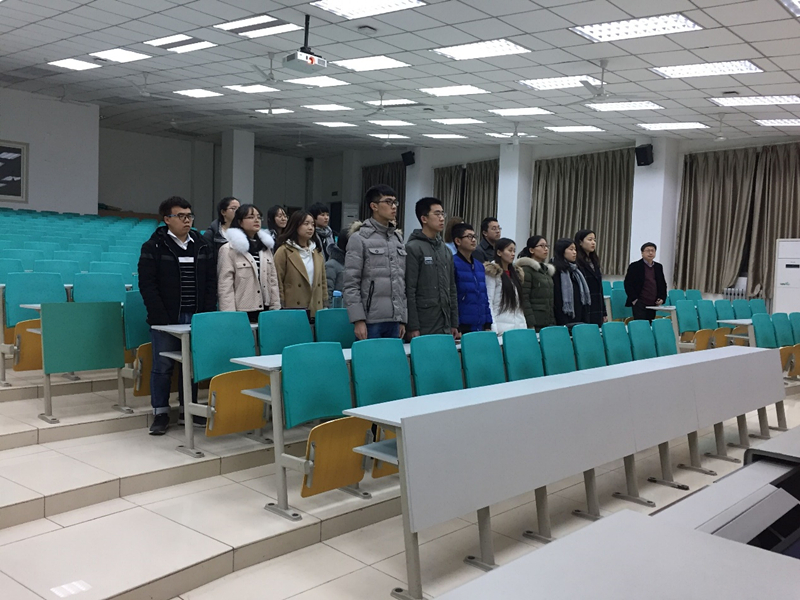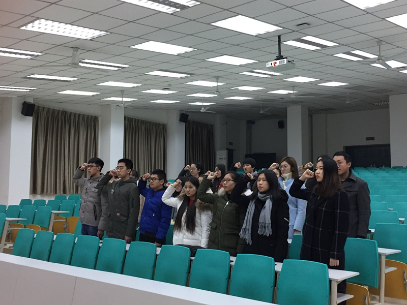 2018年1月1日晚八点,万象城官网学生第一党支部召开预备党员宣誓仪式,支部书记赵志博同志,副书记陈明哲同志,组织委员闫丹丹同志及二十位预备党员参加了会议。宣誓仪式由赵志博同志主持。