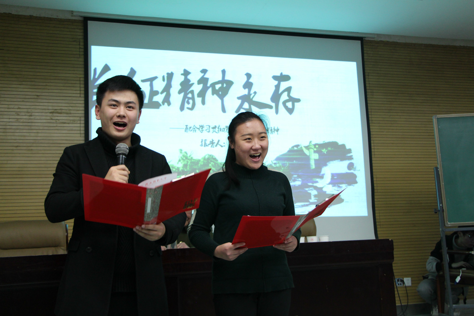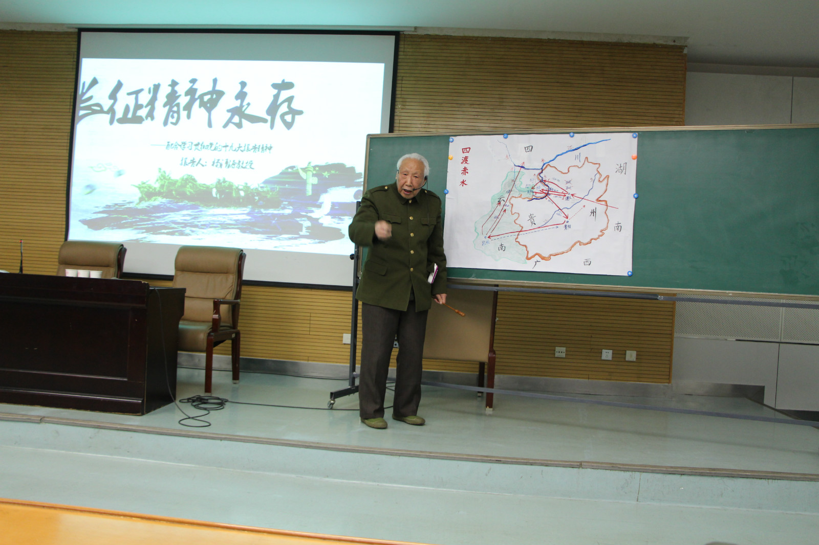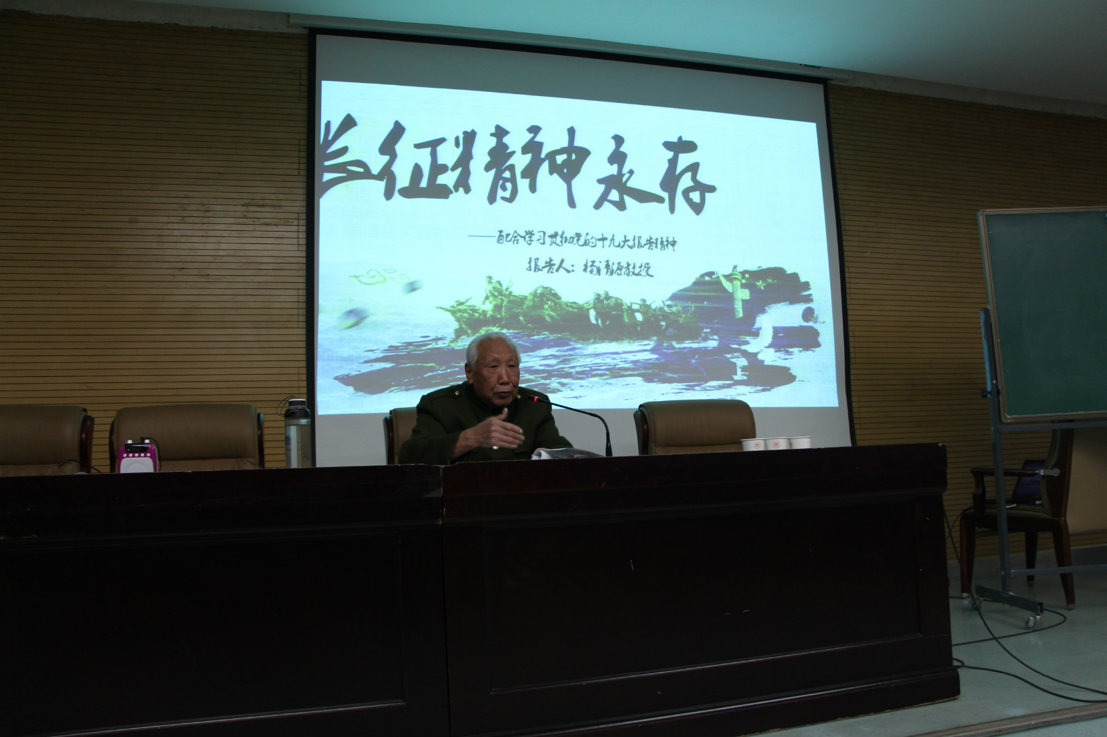 2017年12月28日晚,抗美援朝老兵杨清源教授于崇鋈楼一层为万象城官网学生举办了主题为 “长征精神永存”的讲座,万象城官网2017级全体学生与辅导员陈应权老师都参加了本次报告会。