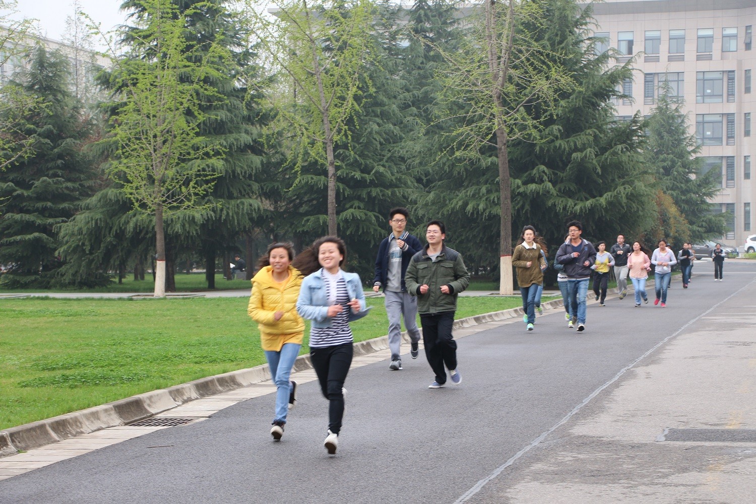 开幕式结束后,校团委副书记祁斌业老师为首先进行的校园越野赛发令。随着一声清脆的枪响,一百多名同学在学院老师们的带领下开始了奔跑,浩浩荡荡的经过上林路南口、新勇活动中心、格物楼、图书馆、上林体育馆,最后回到田径场,成为了学校一道亮丽的风景。