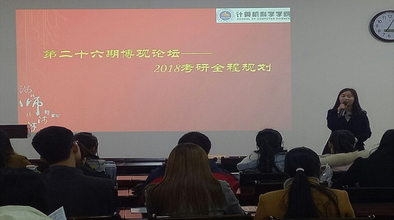 2017年2月22日晚上7点万象城官网在报告厅举办了第二十六期博观论坛,万象城官网2014级兼职辅导员韦亚勇以及2014级有意向考研的同学积极参加了此次论坛。论坛主要向有志考研的同学说明了2017年的考研情况,并向同学们讲解了2018年考研的全程规划,就考研的准备工作以及接下来考研过程中的各个时间节点对同学们进行了讲解,同学们对接下来的考研准备工作也有了一个清晰的认识。