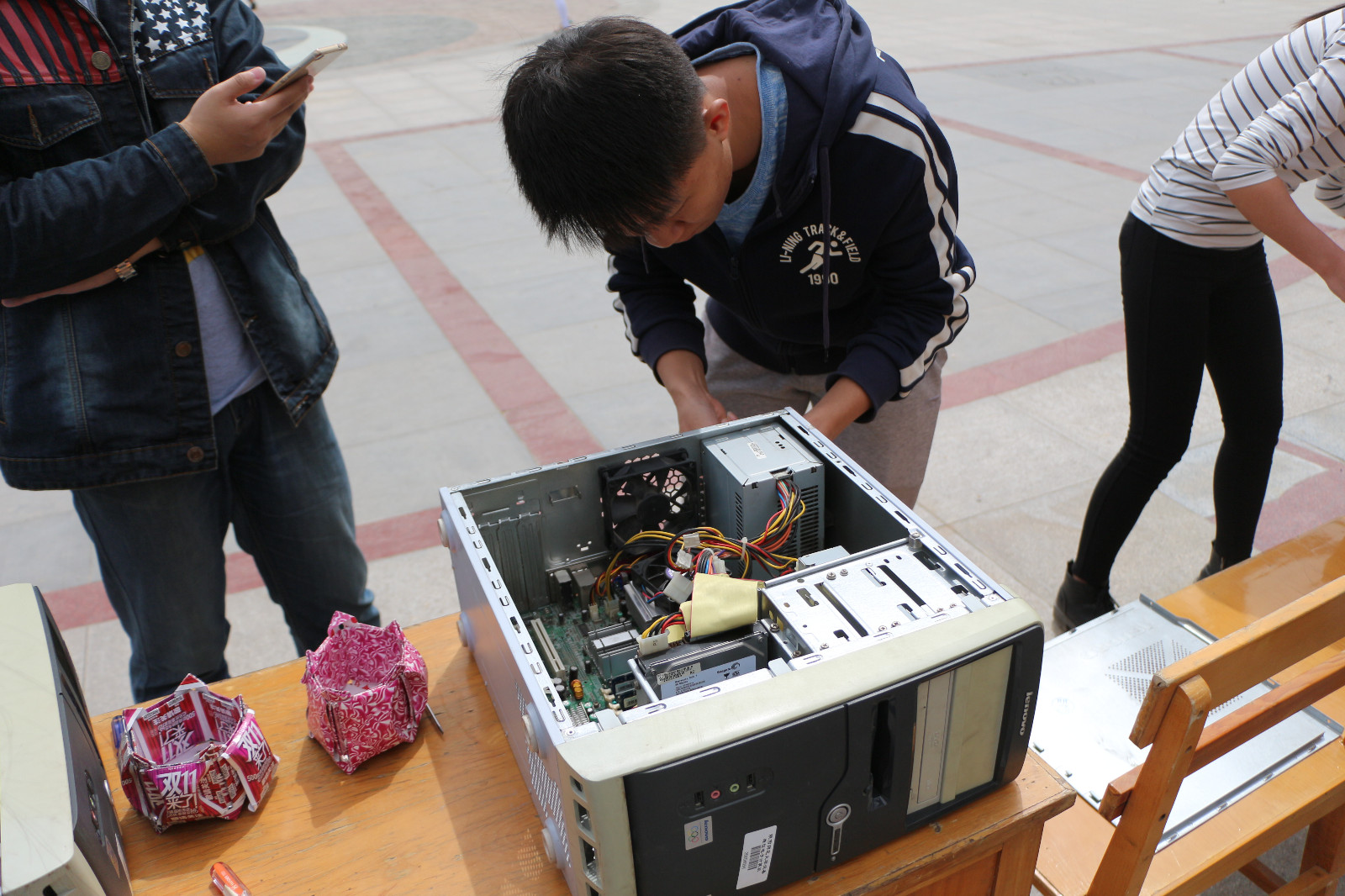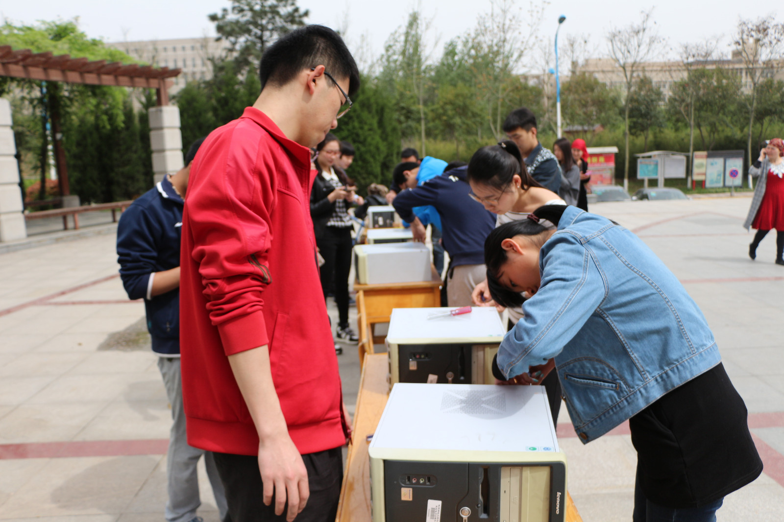 4月17日上午,由计算机科学协会举办的第二届电脑全能王大赛之拆装机比赛,在阳光苑广场顺利举办。电脑全能王大赛分为四个部分的比赛:PS比赛,编程比赛,PPT比赛以及拆装机比赛。作为此次全能王大赛的“重头戏”—拆装机比赛,旨在对电脑主机的实际拆装的情况下提高参赛选手对电脑主机内部构造的理解程度,激发选手兴趣,提高选手们的动手实践能力。