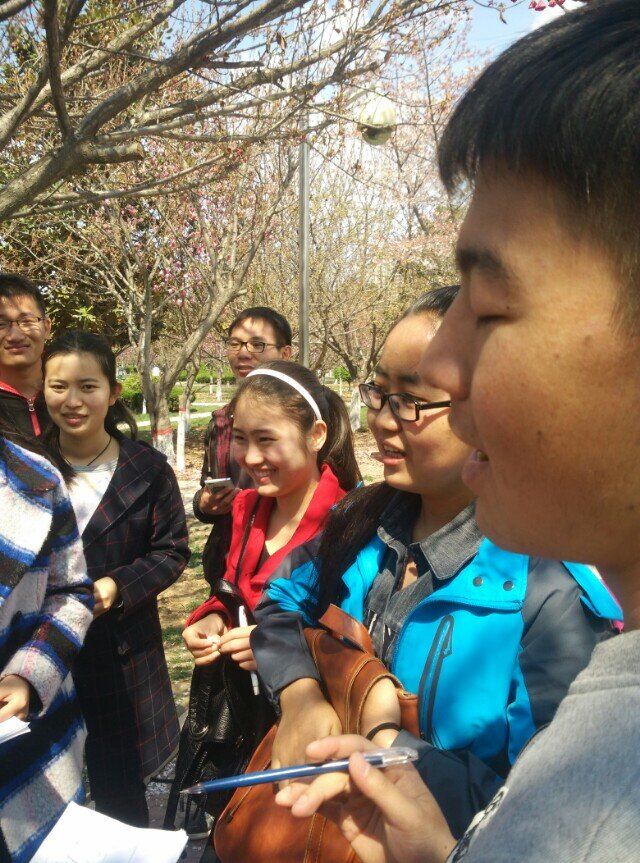 上午十时同学们集合一同步行前往樱花广场,到达目的地之后邹姣同学宣布本次团日活动正式开始。首先组织大家一起进行心理小游戏,将所有同学分为四个组,不进行言语交流,通过其他讯息从后往前传递数字信息。游戏开始之前,各组组员集思广益,有的小组通过拍掌传递数字,有的小组将队友的后背分成九宫格通过“按键”传递信息。为凸显我们的专业特长,数字不仅仅局限于十进制,还包括十六进制、二进制等。游戏一共分为三轮,每轮结束之后组员之间都可以及时发现问题并进行调整,游戏结束后对输了的小组进行了小小的惩罚。游戏过后,便组织大家观赏樱花并拍摄照片。同学们彼此之间团结互助,竭尽全力为其他同学拍摄最美的照片。最后,全班同学在樱花树下驻足观赏,并留下了合影。